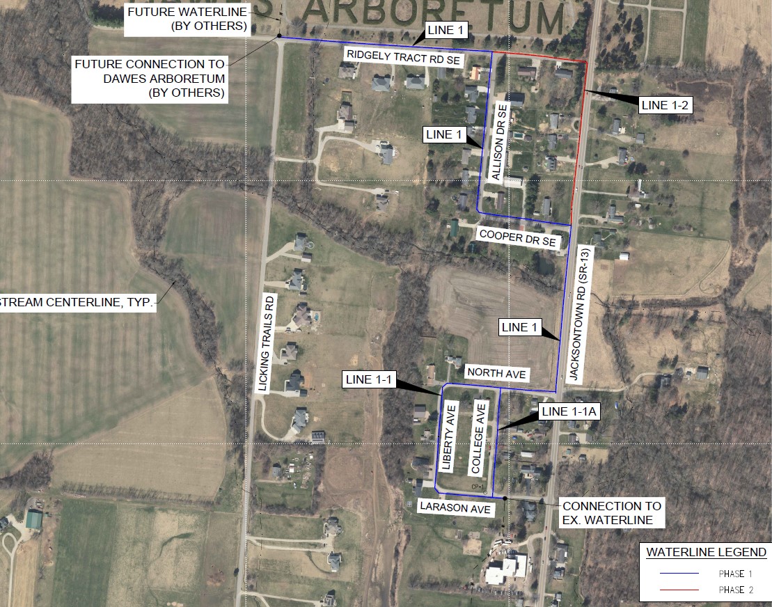 Phase 1 (see map below) construction has begun and Licking County Health Department and Licking County Water